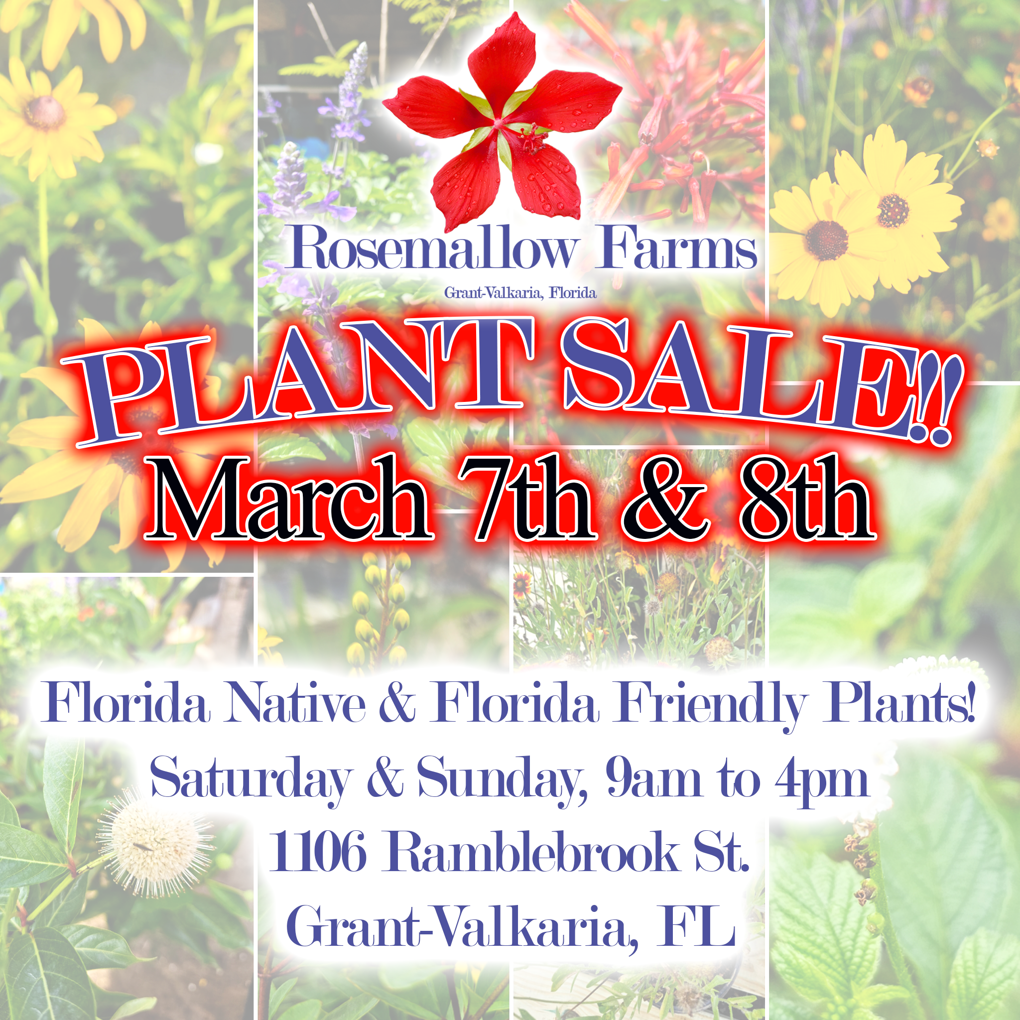 We will be open Saturday and Sunday, March 7th and 8th!! Lots of Florida native and Florida friendly varieties in stock, about 70 species at this time!